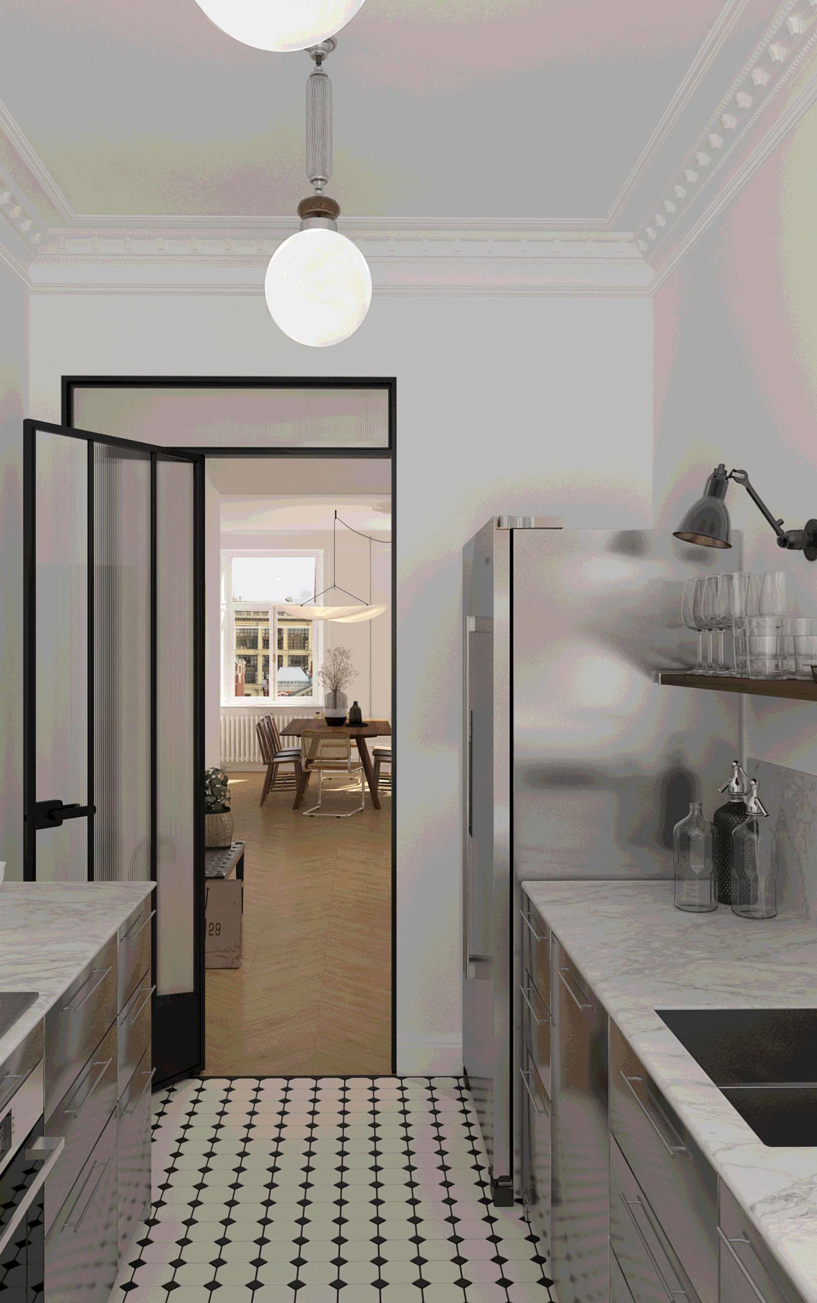 Сложный и увлекательный проект — разобрали полностью и собрали заново. Наполнили современным инженерным оборудованием. Отреставрировали вековые межкомнатные двери, сохранили лепные розетки и поиграли с фальконье.